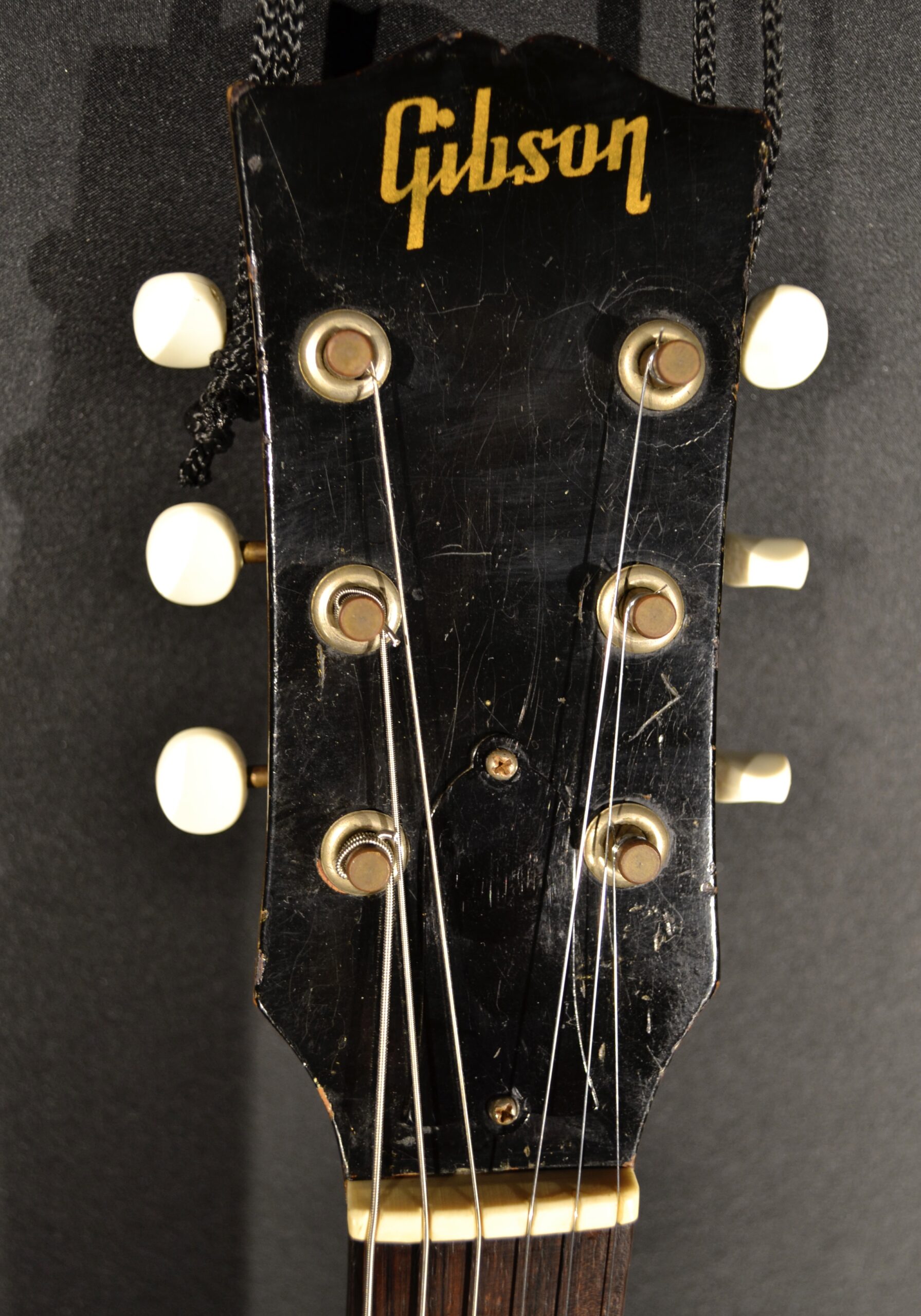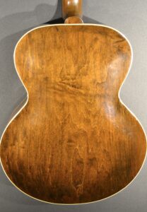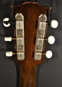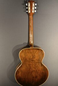 Single P-90 model in nice condition. Original Pickguard and tuners. Tailpiece changed to a shorter version at some point in it’s 75 year lifetime. Some fret wear and it comes with a non original hard shell case.