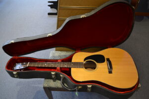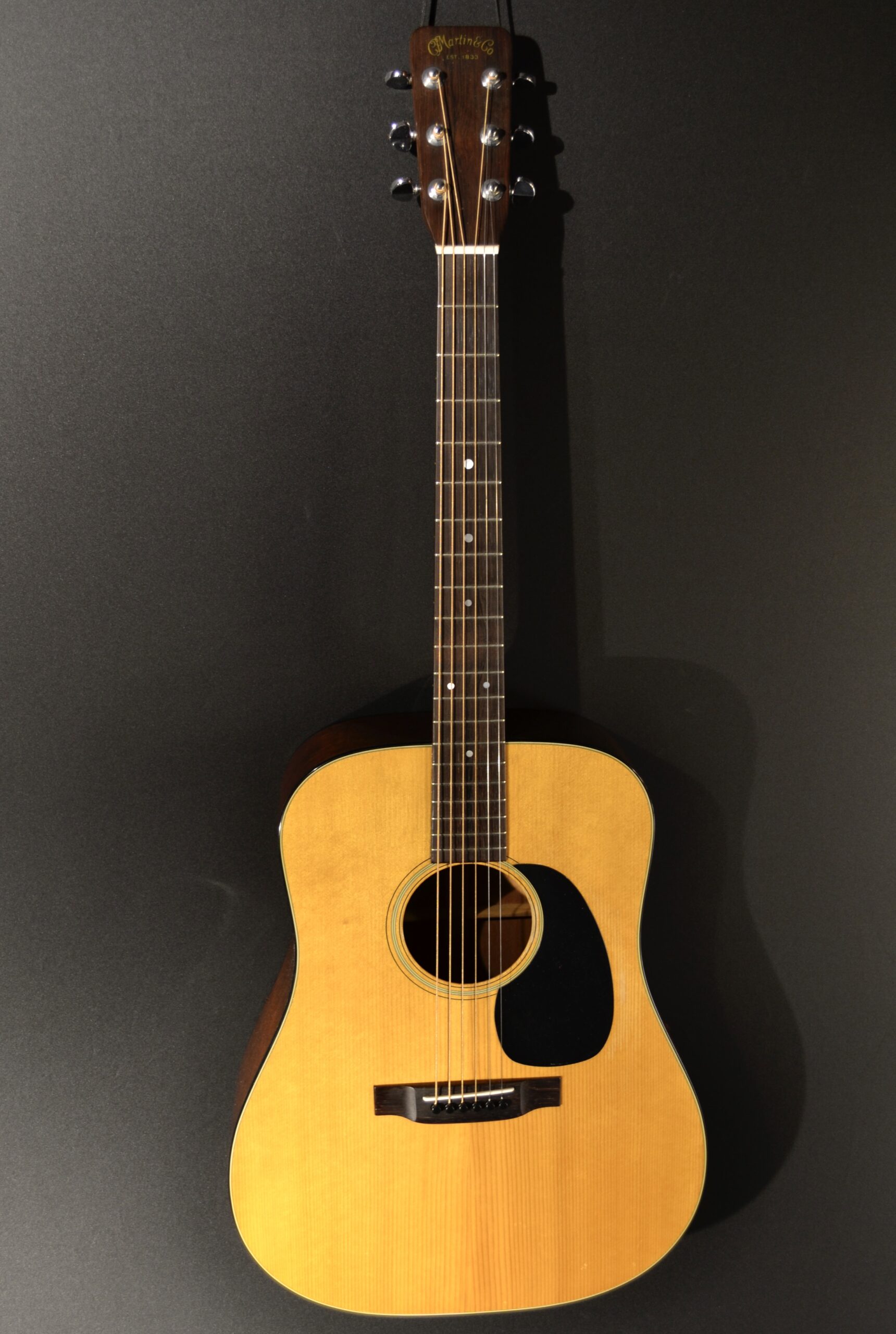 1968 C. F. Martin D-18 Excellent Condition D-18, Spruce top, mahogany back and sides, Brazilian headstock veneer, no cracks, loud cut through voice, we did a neck set, level and dress and set up. Non original old hard shell case. $5,500
