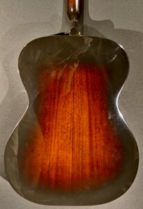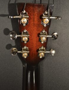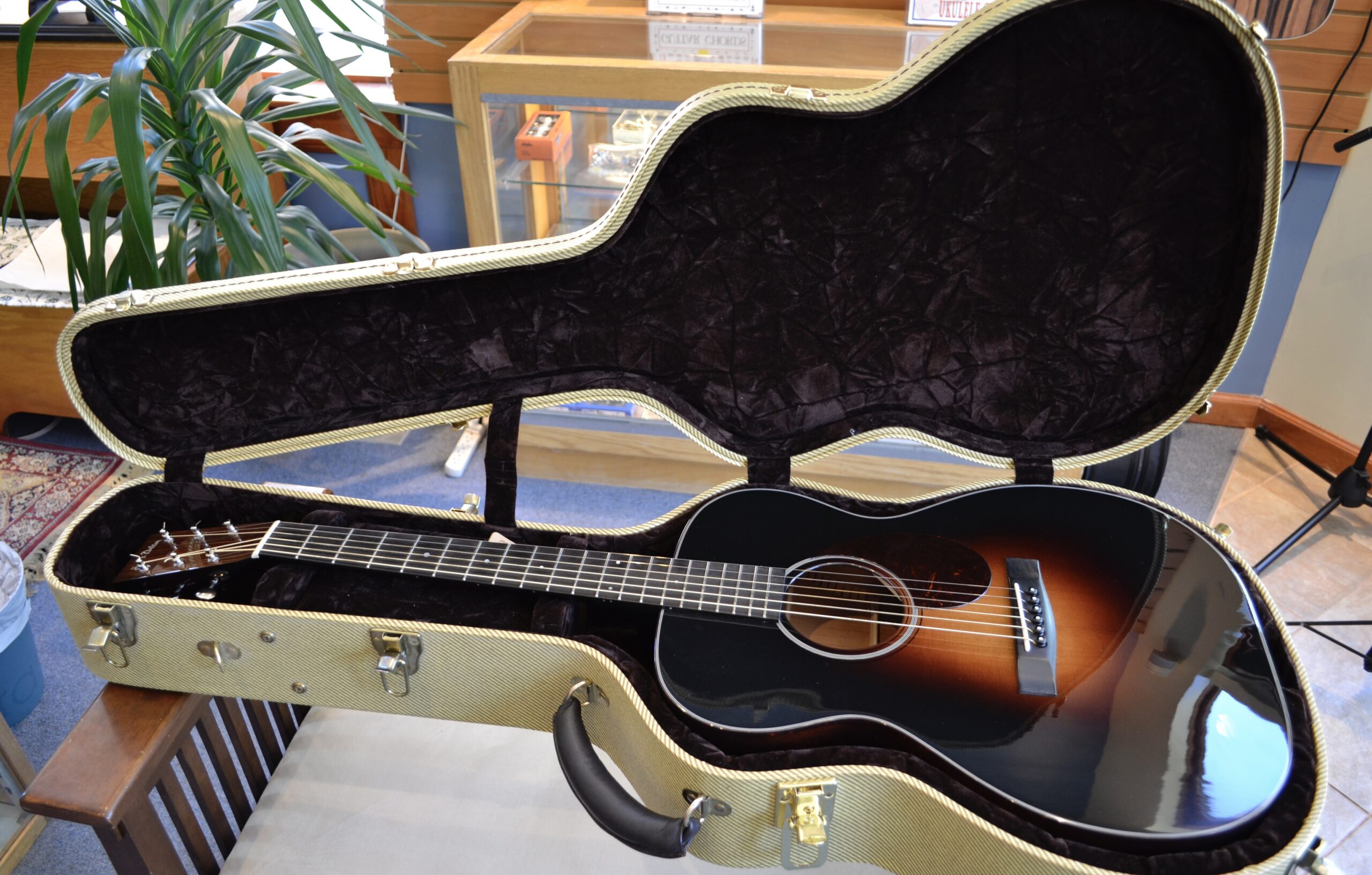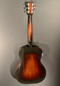 Great fingerpicking OM model with sunburst spruce top and mahogany back and sides. The nut width is 1 3/4″. This instrument is in excellent condition but it has a slight ripple in the top and back near the base. It comes with the original hard shell case. *This is a consignment item-please call ahead so we can have it here for you to try*