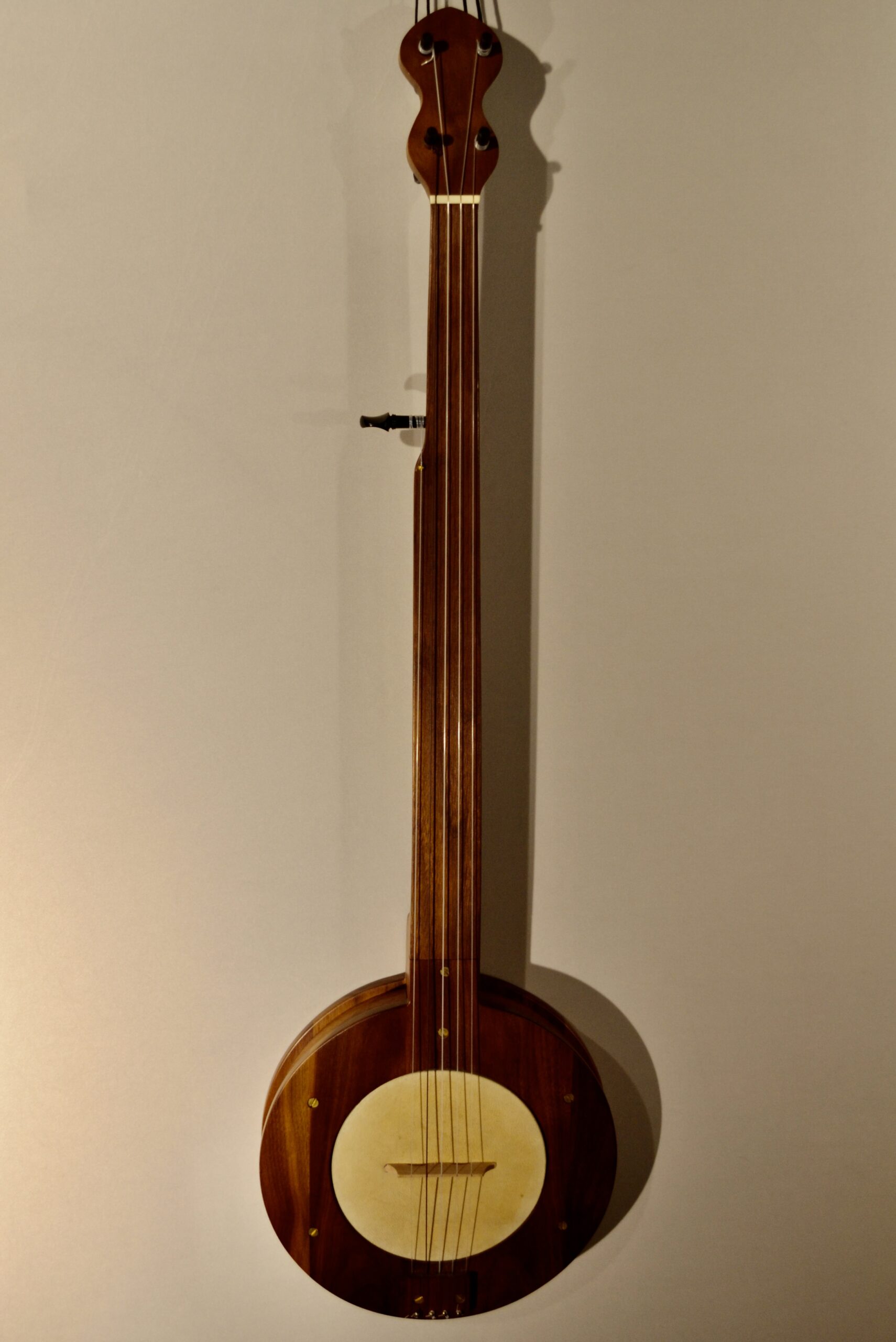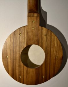 Goat skin head, 26″ scale, Walnut, in Excellent condition.